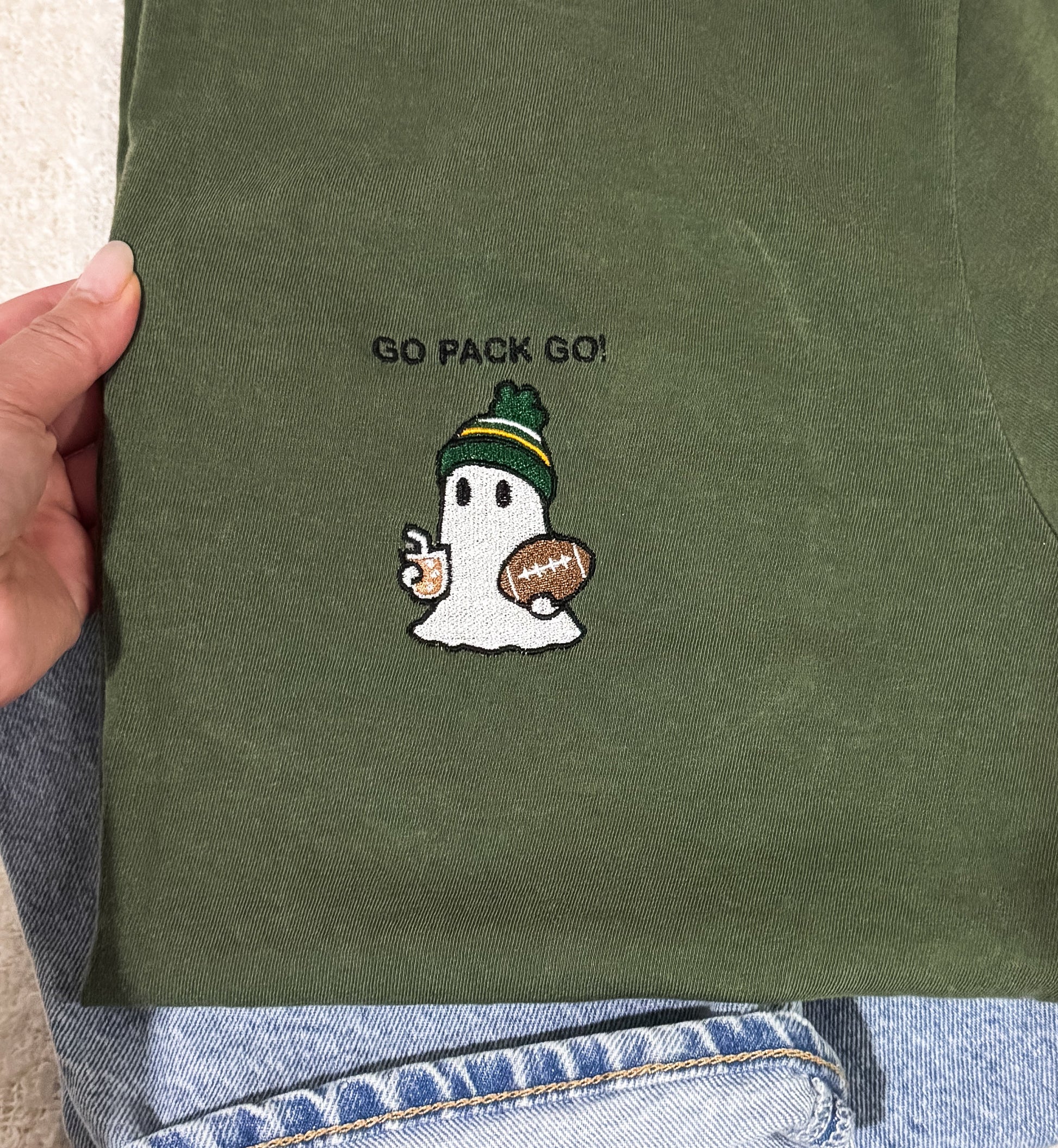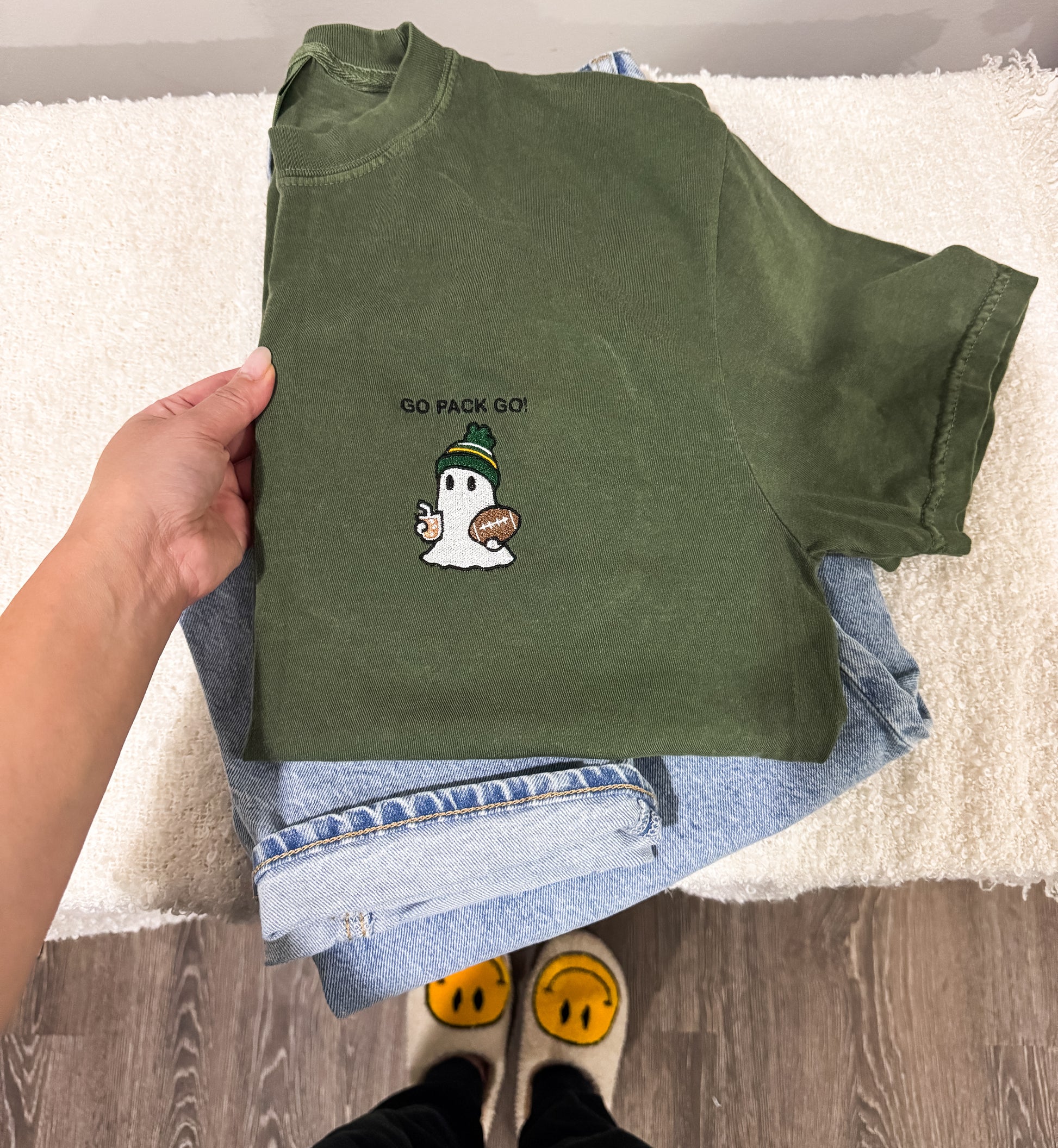 This embroidered sports apparel will be sure to turn heads! If you love ice coffee and football this fall season, this t-shirt is for you!