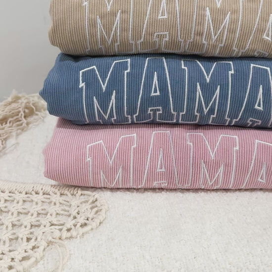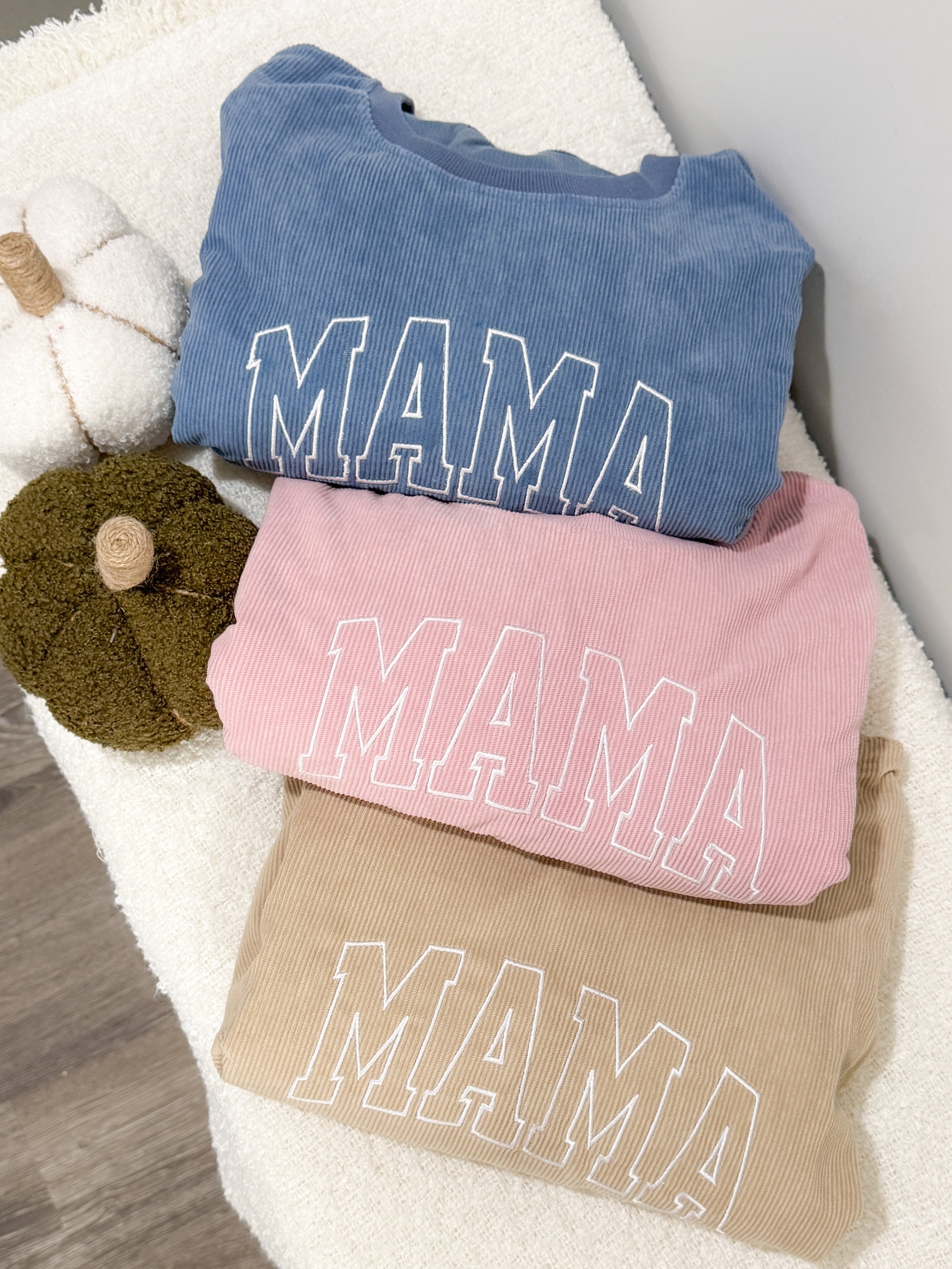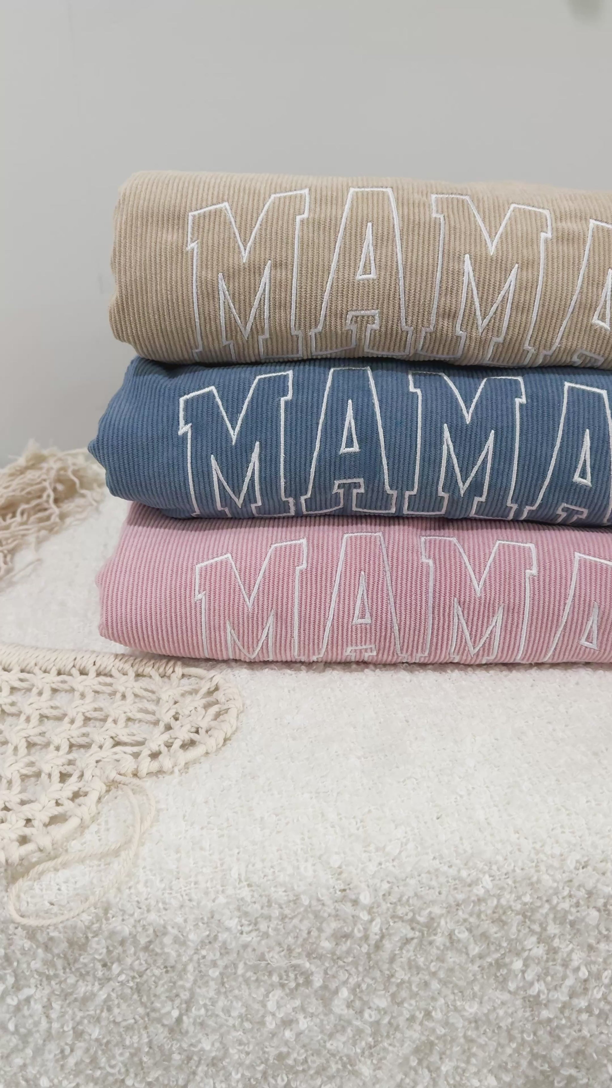 This is a popular embroidered MAMA cozy and casual oversized corduroy pullover top. Designed with a classic crewneck and long sleeves, this soft and relaxed fit is easy to style and comfortable for everyday wear. It is thin enough to layer, but also light weight enough to wear on it's own!